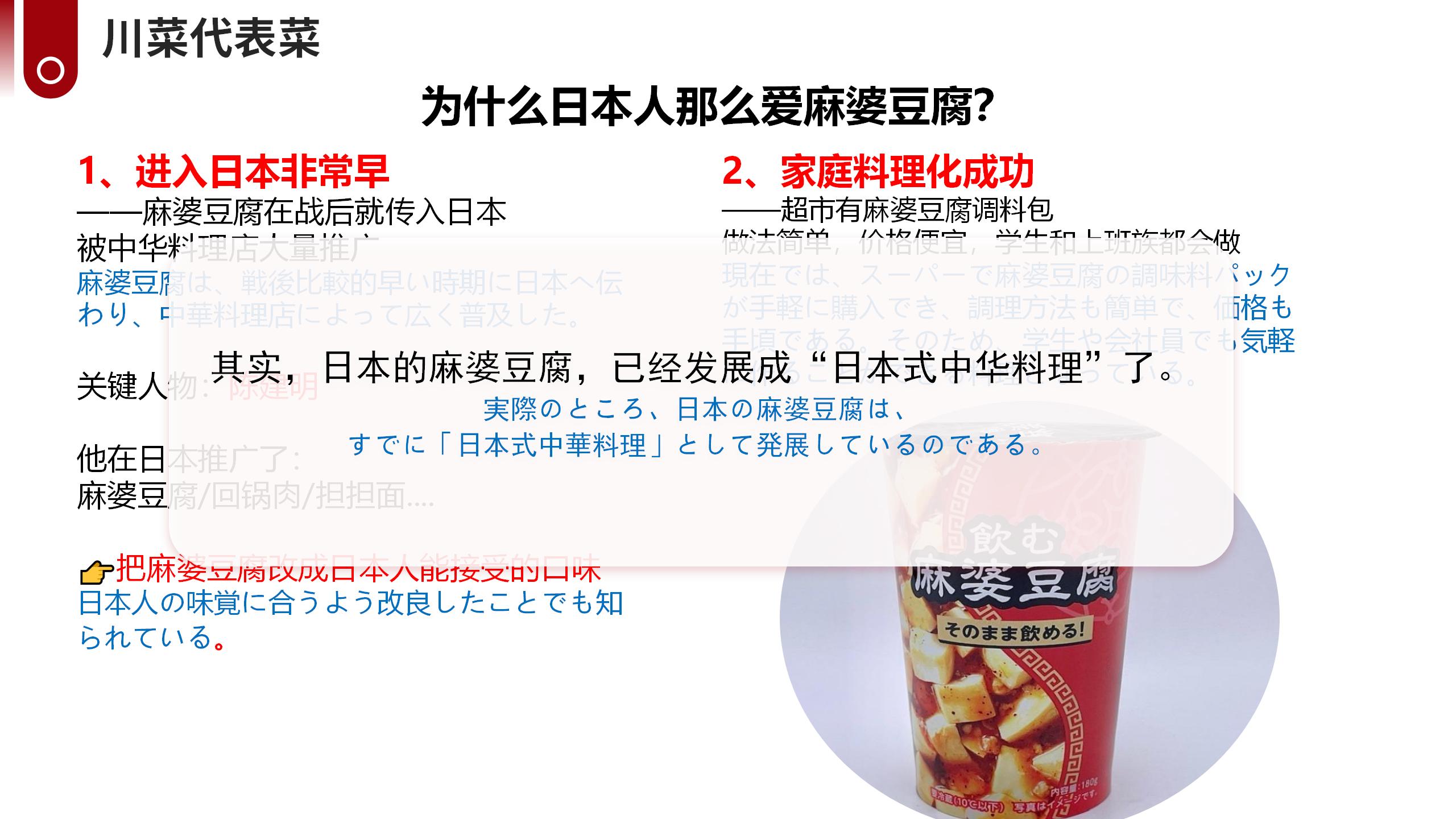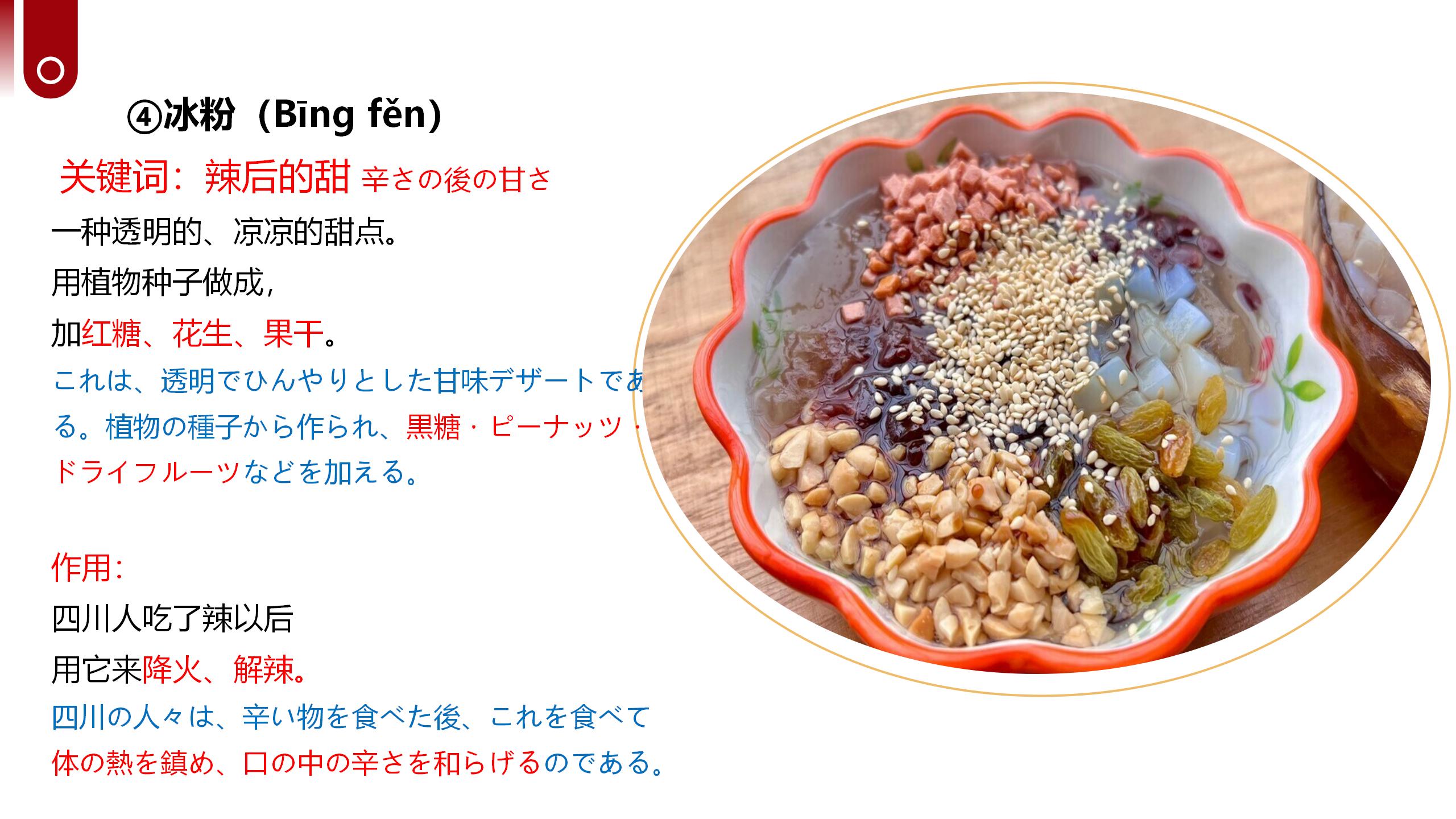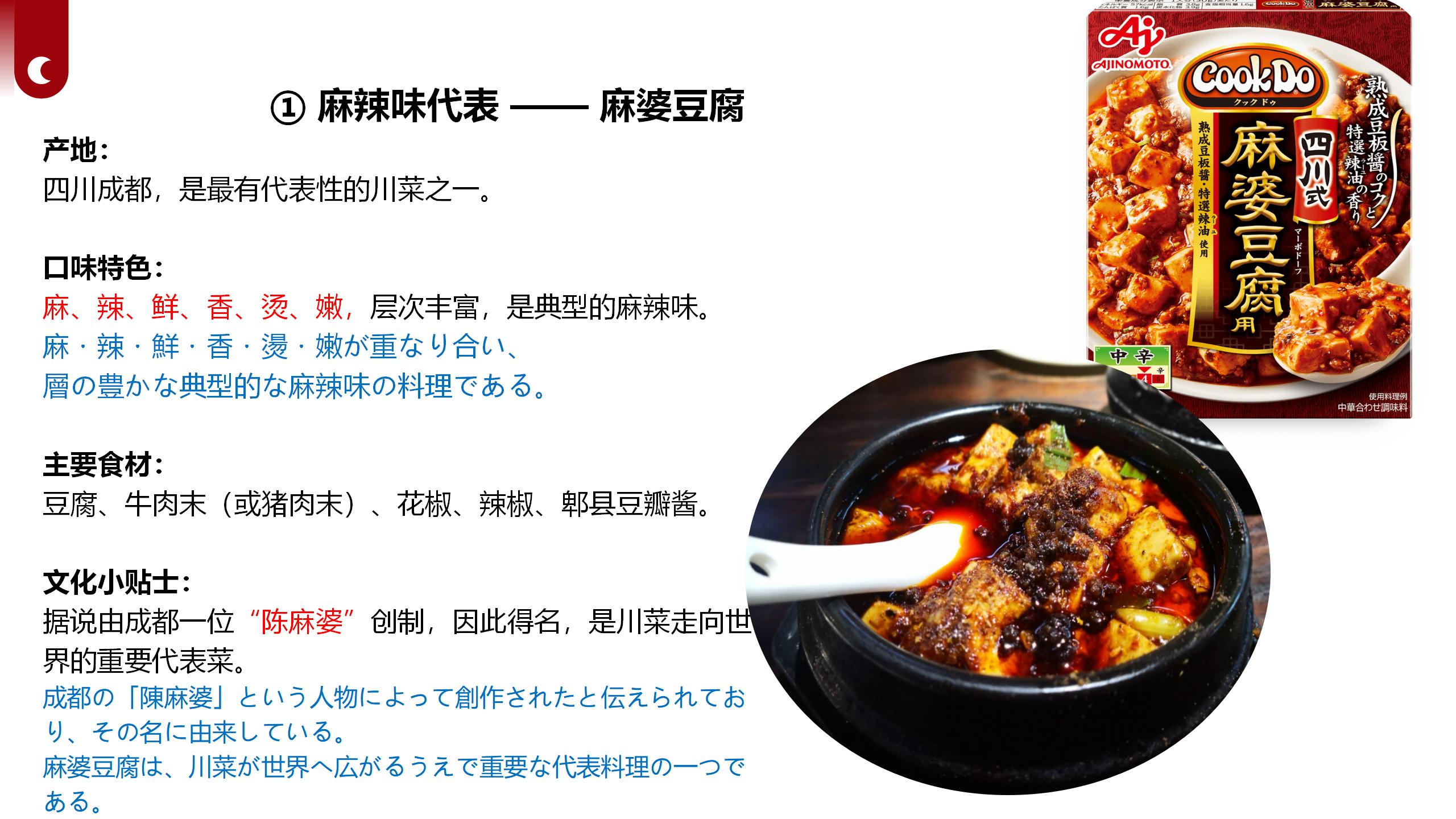 ホーム > サイトで中国語学習 > 第3期|川菜と四川文化を学ぶ中国語グループレッスンの振り返り 2026/04/01 四川はパンダが生息する神秘的で美しい大地!豊かな巴蜀文化と、熱気あふれる食文化が世界中で愛されています。日本でも親しまれている麻婆豆腐や担担麺をはじめ、四川料理は麻辣を軸とした独特な味わいと奥深い食文化を持ち、中華食文化の中でも際立った存在となっています。このたび、四川の伝統文化・歴史・風土、そして川菜の特徴や背景を深く学べる文化紹介クラスを開講いたします。料理を食べるだけでなく、その背景にある文化や歴史、人々の暮らしまでを知ることで、四川の魅力をより豊かに感じていただける内容となっています。 - サイトで中国語学習, 生活情報